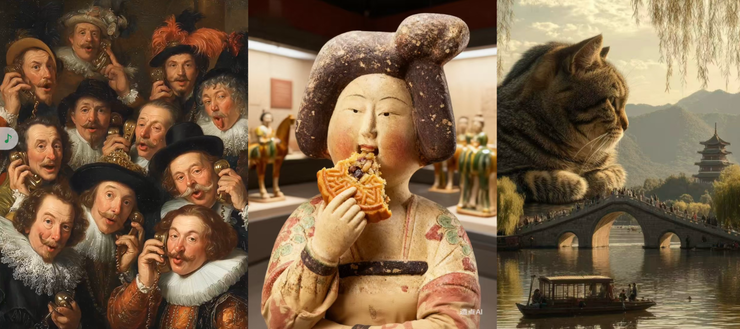 内测期间,“造点”吸引了大量专业AIGC创作者,诞生了如“中世纪油画大合唱”、“文物吃月饼”、“巨物猫咪去旅行”等爆款作品。视频中的人物口型、动作、神态、配乐一气呵成。一位创作者表示:“Midjourney生成图片,再配合Wan2.5生成视频,画质细腻稳定,尤其是这次视频模型的升级,音频视频可以同步输出,大大提升了创作效率。”
