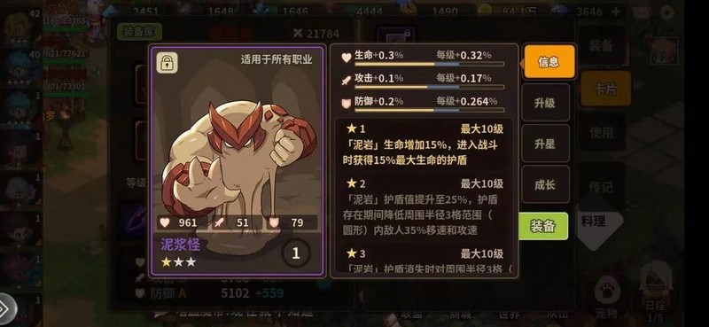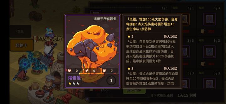 熔岩怪是前排坦克卡牌,提升防御与生命值。