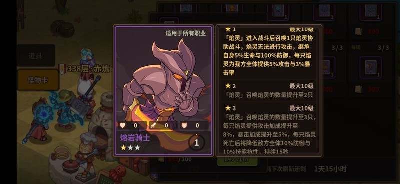 熔岩骑士是辅助输出卡牌,可召唤焰灵提升攻击与暴击,焰灵阵亡时还能降低敌方防御。
