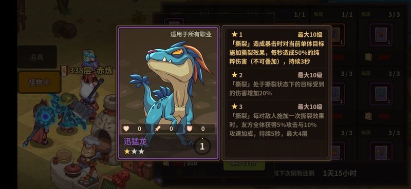 迅猛龙是辅助输出卡牌,需搭配高攻速与高暴击以触发撕裂效果。