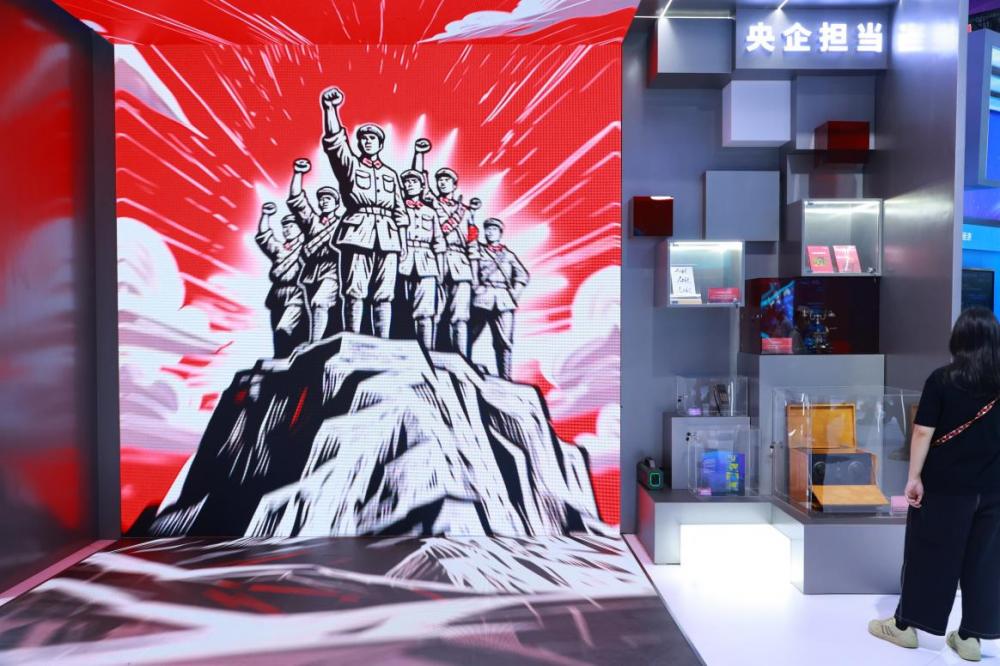 今年正值中国人民抗日战争暨世界反法西斯战争胜利80周年,展区内陈列的“半部电台”、骨架电话机等珍贵历史实物,与讲述“红色电信精神”的沉浸式视频相得益彰。