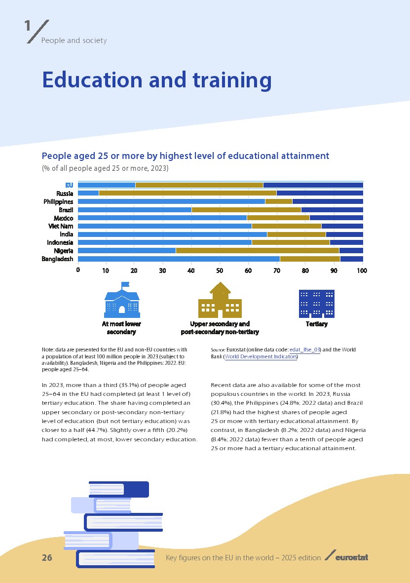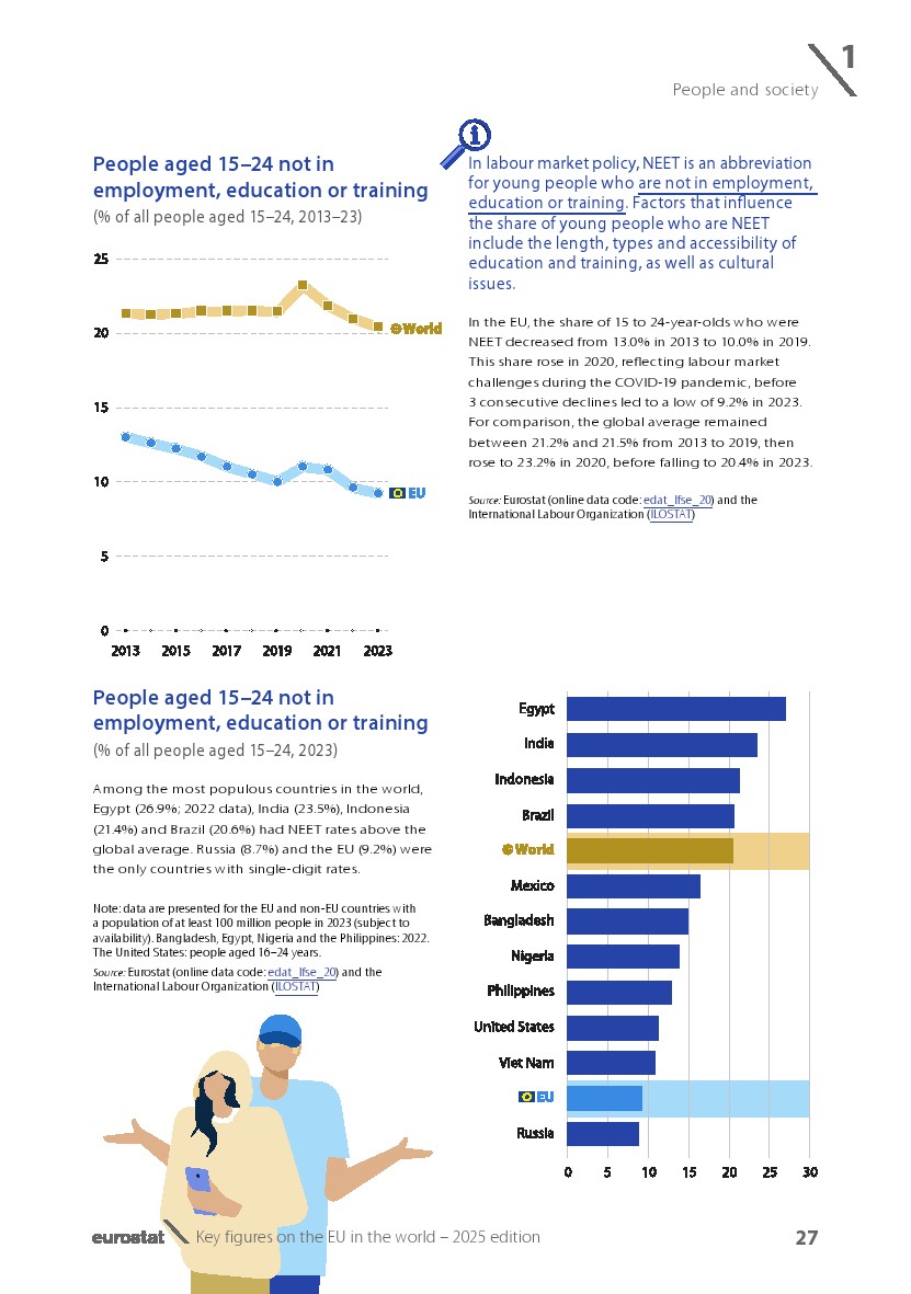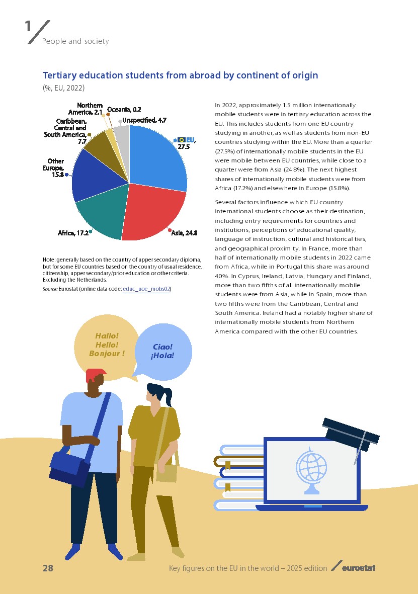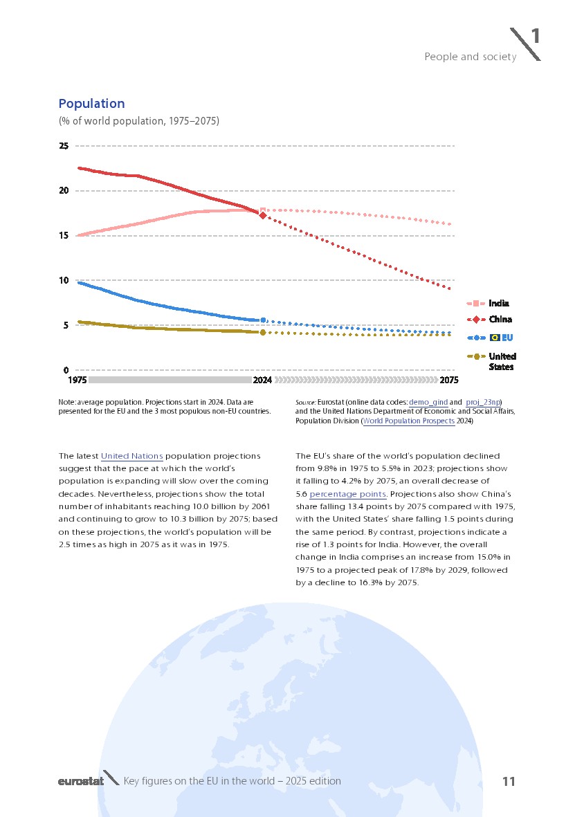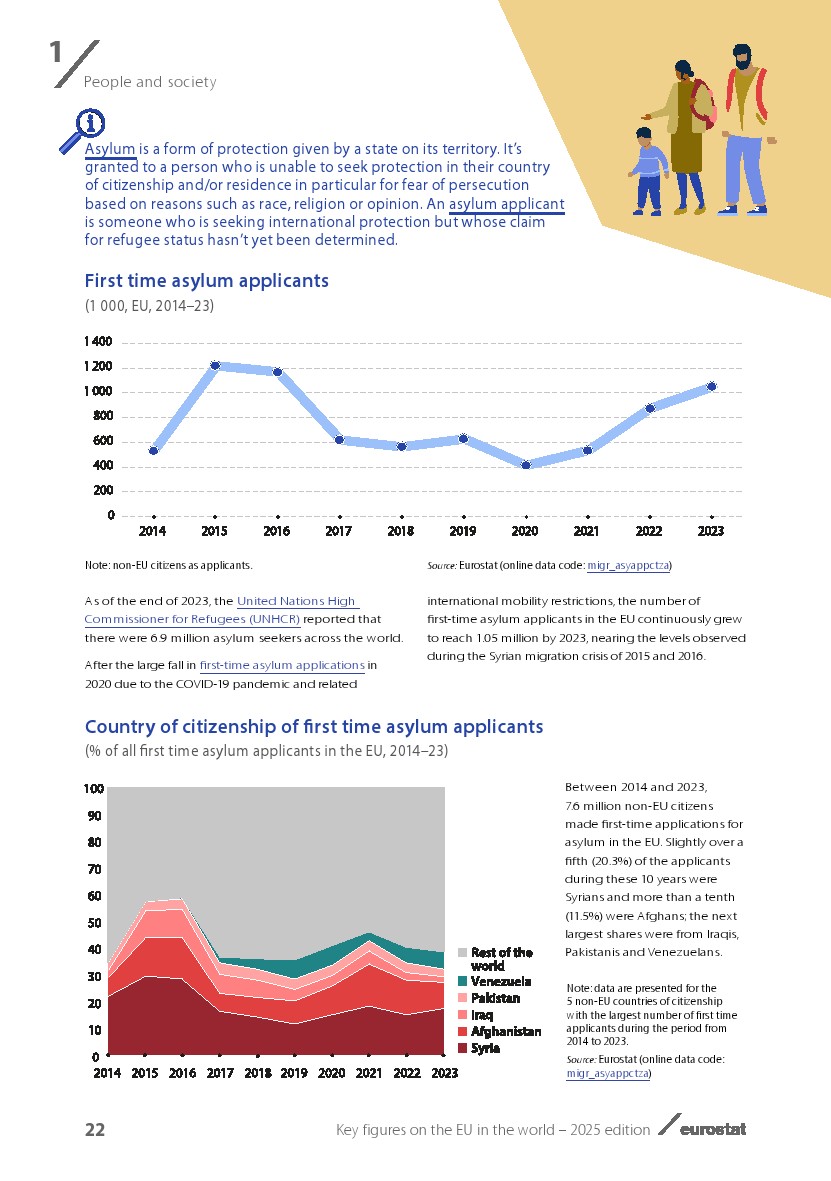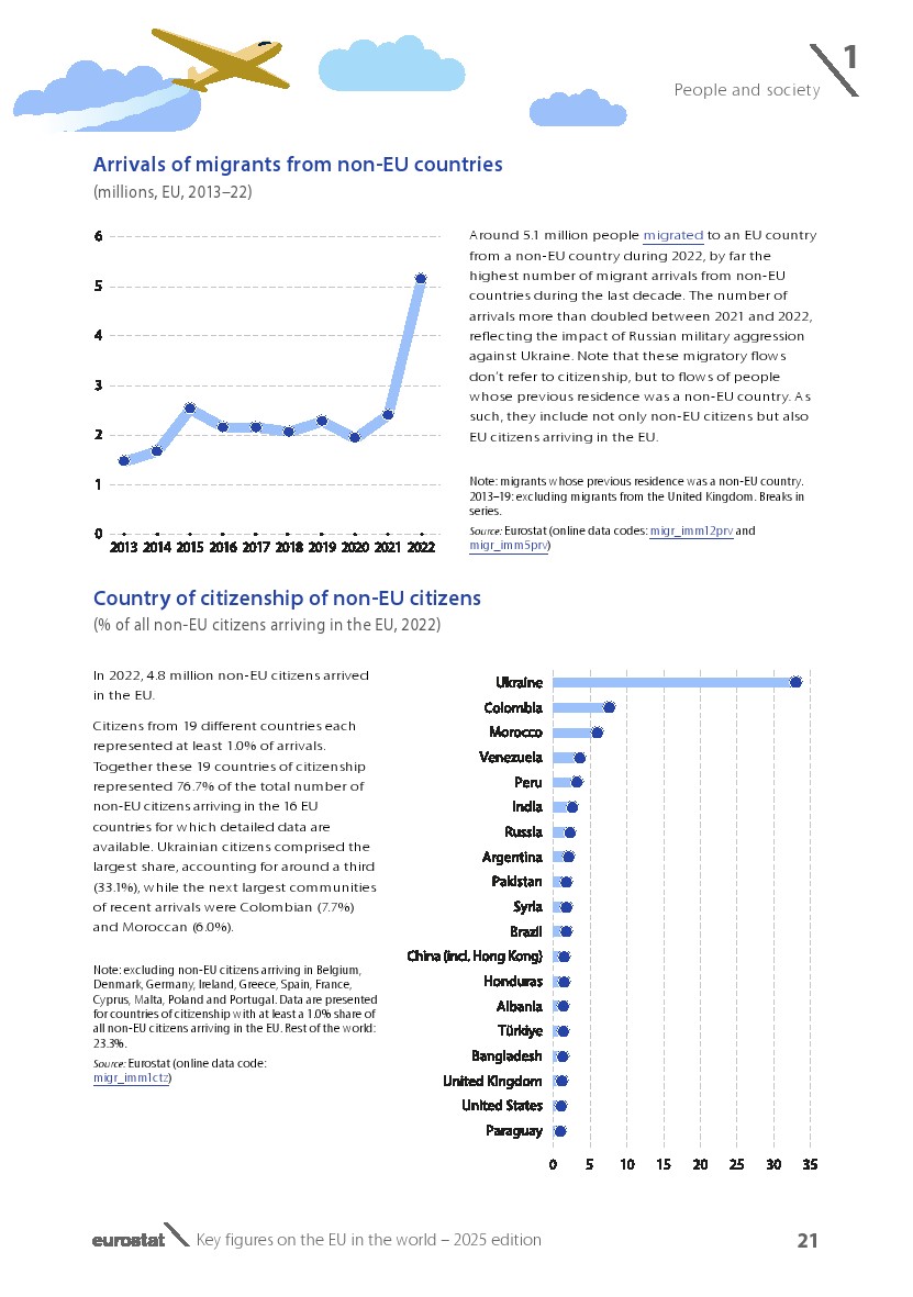 欧盟统计局发布了“2025年欧盟展望”。任何拥有欧盟国家公民身份(国籍)的人自动成为欧盟公民。2023年初,有2740万人居住在欧盟但不具欧盟国家公民身份,相当于欧盟人口的6.1%。