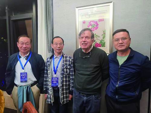 2024年10月底,玉素甫·艾比布拉(右一)、乔治·帕里西(右二)、周海军(右三)、厦门大学物理科学与技术学院教授赵鸿在浙江大学举办的统计物理与复杂系统论坛上。受访者供图