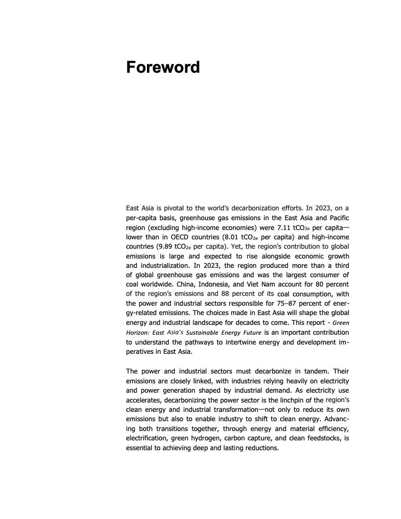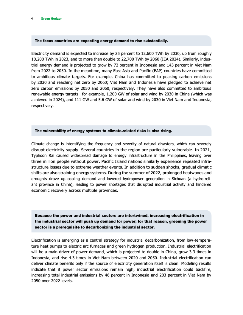 世界银行最新报告《绿色地平线:东亚的可持续能源未来》提出切实可行的路径,推动地区能源系统现代化升级,支持电力与工业部门发展——这是东亚实现长期增长、创造就业并保持经济竞争力的关键之举。本报告为世行2010年报告《变革之风:东亚的可持续能源未来》的后续研究成果。