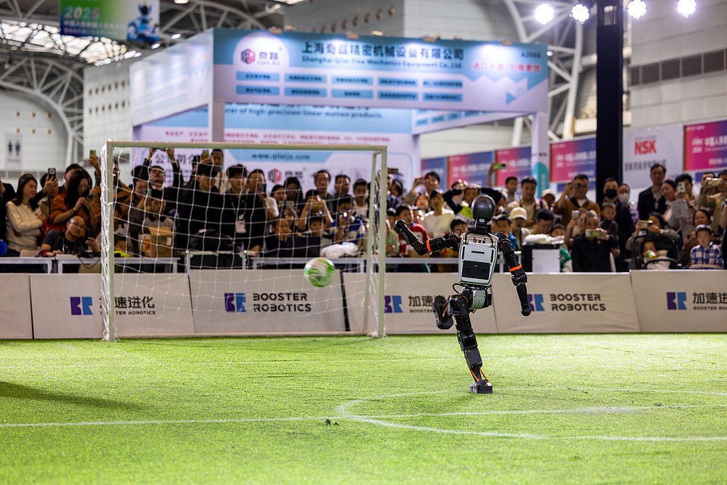 要踢一场好球,机器人在足球场上要靠视觉精准识别球、队友、对手和边界,要在高速对抗中保持平衡、自主避障,还要通过无线通信实时协同决策,甚至碰撞倒地后必须自己爬起来。