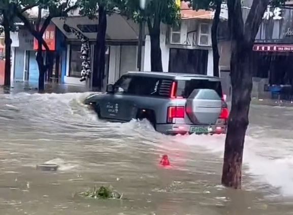 据网友上传的视频显示,广东某地暴雨后,城市街道上满是积水,一男子驾驶一辆仰望U8竟然在街道上来回多次穿梭。
