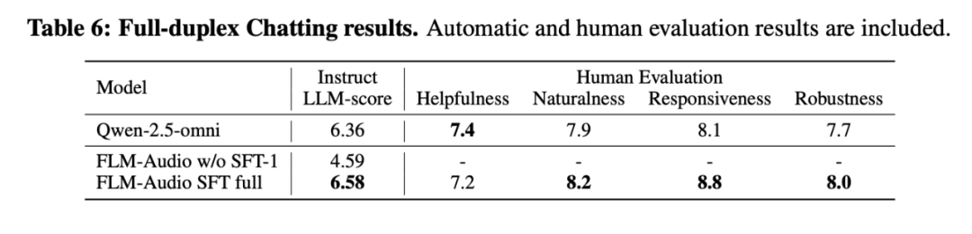 系统实验:ASR、TTS、对话性能在原生双工模型中全面领先