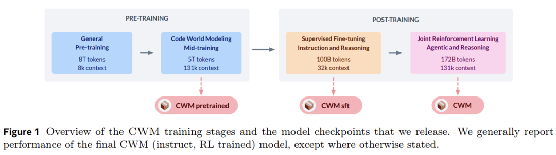 为支持进一步的代码世界建模研究,Meta 开放了模型在 中间训练(mid-training)、SFT 和 RL 阶段的检查点。