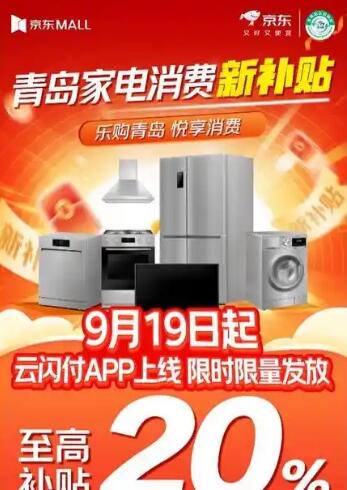 为全面落实国家“促消费”政策,激发绿色智能家电消费潜力,青岛银联、青岛银商联合青岛京东MALL共同推出“青岛家电消费新补贴”。2025年9月19日至10月8日,消费者在云闪付APP家电以旧换新专区可直接领券,到青岛京东MALL购买冰箱、电视、洗衣机等指定品类家电可享补贴至高20%,单件至高补贴2000元。