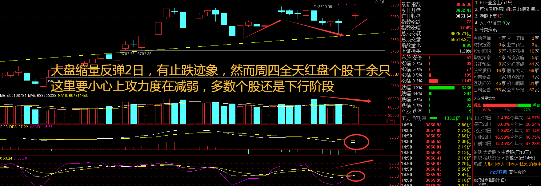 上证指数周四出现2连涨的走势,唯一的问题在于上涨个股数量相对于前一日减少了,说明资金跟风力度开始下降了。本周市场聚焦政策动态与产业新动向。2025 年世界人形机器人运动会闭幕,世界人形机器人运动联合会成立,将推动技术突破与产业生态构建,为相关赛道注入长期动能。接下来注意上证指数能否在3860点之上稳住。