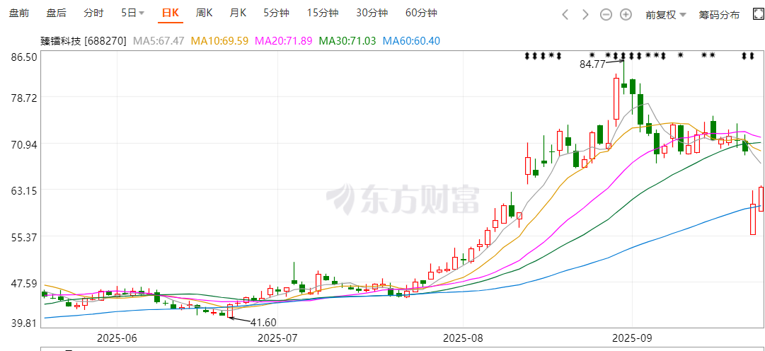 二级市场上,公司股价今年以来持续攀升,累计涨幅接近100%,并在今年8月底盘中刷新上市以来新高,股价一度飙涨至84.77元/股。截至9月23日收盘,该股报63.6元/股,总市值136亿元。