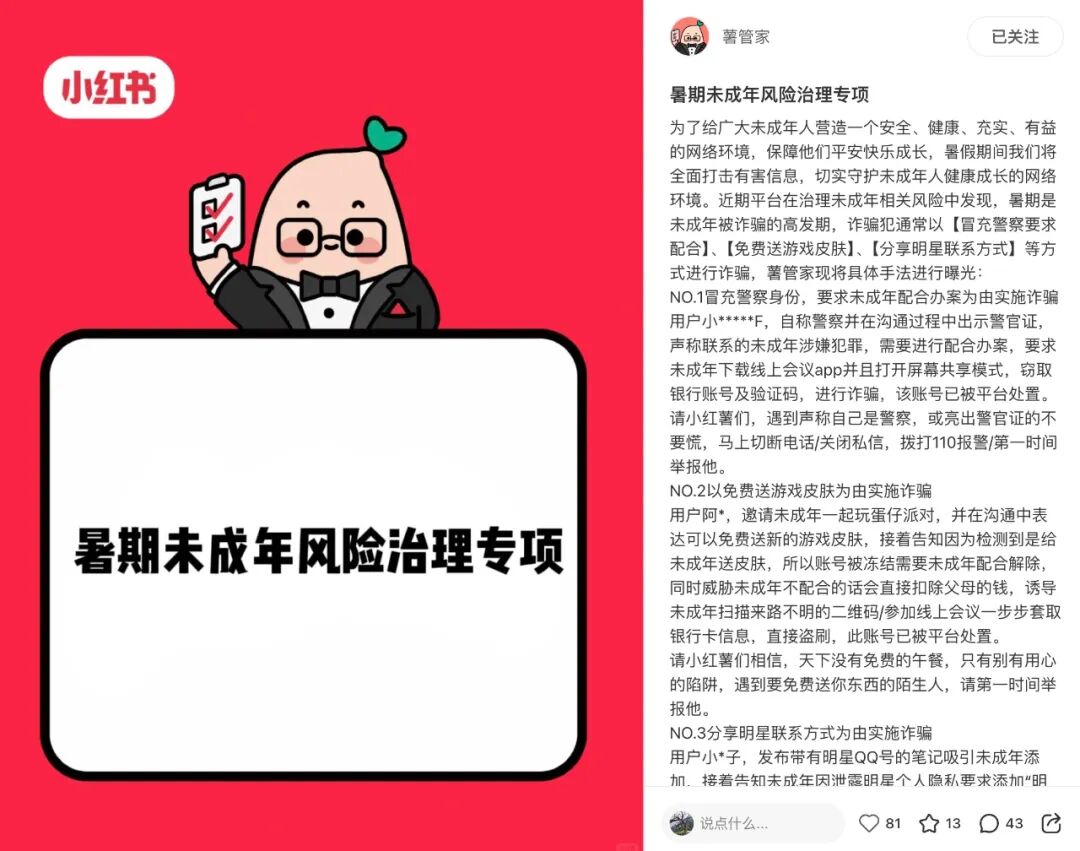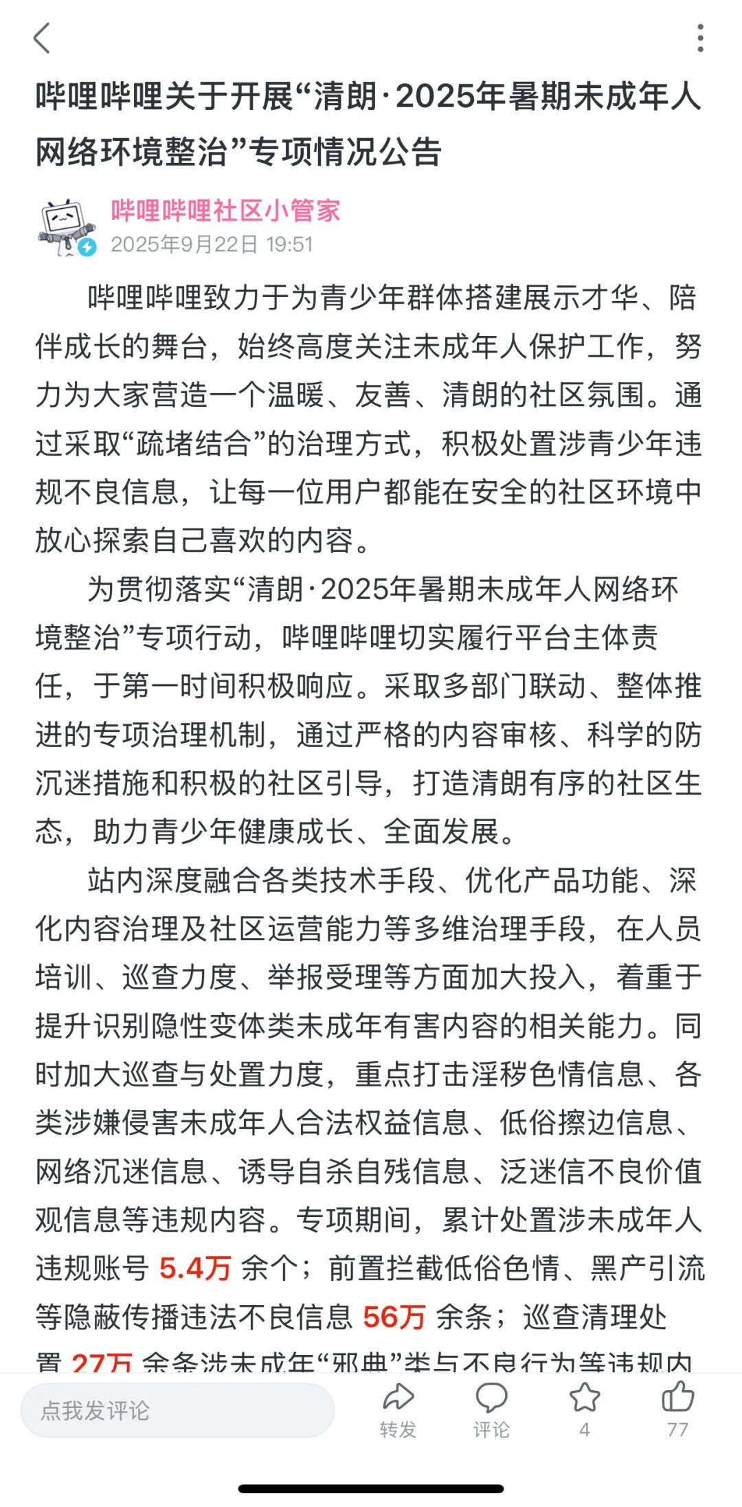 下一步,市委网信办将按照党的二十届三中全会关于“健全未成年人网络保护工作体系”的部署要求,会同未成年人网络保护专项协同机制单位,持续深化专项行动治理成效,督促网站平台切实履行未成年人网络保护义务,对问题突出、整改不力的平台和账号,依法从严采取处置处罚措施。积极推动未成年人网络保护工作走深走实,努力形成“政府有为、企业担责、家校协同、未成年人自主”的上海治理模式,为未成年人营造一片网络晴空。