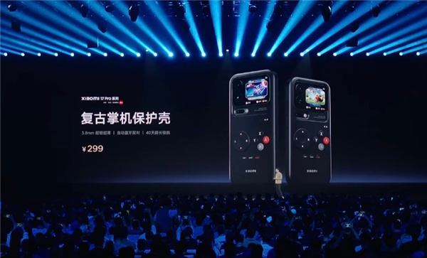 更有意思的是,小米17 Pro还专门配了一个299元的复古掌机保护壳,通过蓝牙连接手机,这个保护壳上的按钮可以操控背屏,玩一些复古小游戏,比如《愤怒的小鸟》《贪吃蛇》等等。
