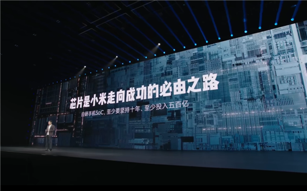 雷军还称,芯片是小米走向成功的必由之路,自研手机SoC,至少要坚持十年、至少投入五百亿。