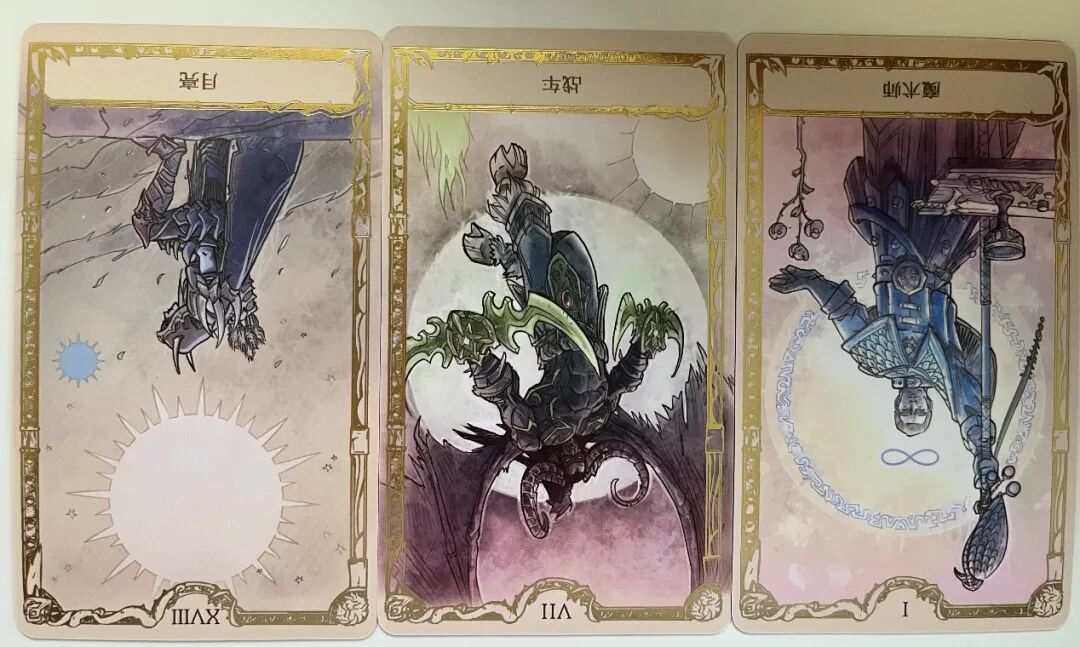 这本指南对我三个逆位的牌阵没有那么乐观,说我过去被人误导,现在又无法控制自己,未来还要时刻警惕骗子、反思自己的自信。故老相传,崇祯皇帝在神圣泰拉保卫战之前从甘道夫处就得到了一模一样的卦象,后来果然兵败奥格瑞玛。但对于这些丧气话我们不要多听,要坚信自己对塔罗的解读。
