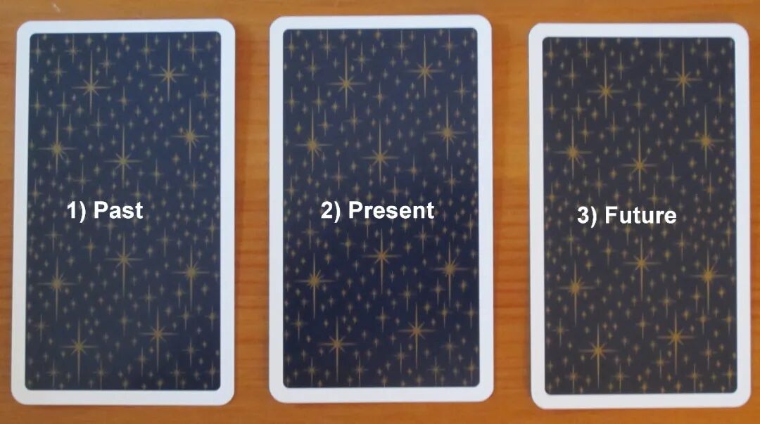 我使用的是最常见的万能牌阵,也就是翻出3张大阿尔卡那塔罗牌,分别对应过去、现在和未来的情况。