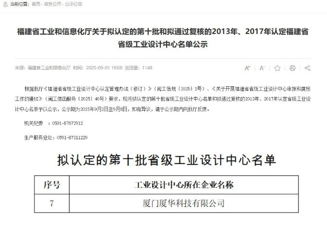 近日,福建省工业和信息化厅正式公示了第十批省级工业设计中心认定名单,厦门厦华科技有限公司(以下称“PRIMA厦华”)荣耀上榜,成功获得“福建省省级工业设计中心”认定!这是继2023年荣获“厦门市市级工业设计中心”后,PRIMA厦华在设计创新领域实现的又一次重要跨越。