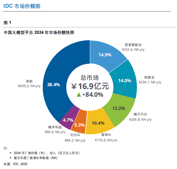 IDC《2024中国大模型平台市场份额》报告显示,2024年中国大模型平台市场规模达16.9亿元,中国电信天翼AI以5.3%的市场份额位列第五,是前五名中唯一的央企。天翼AI凭借星海AI中台在政务、运营商、医疗、交通等10余个重点行业落地,客户涵盖中国电信体系内单位及中车、中物流等外部行业头部客户,展现出强大的行业渗透力和交付能力。