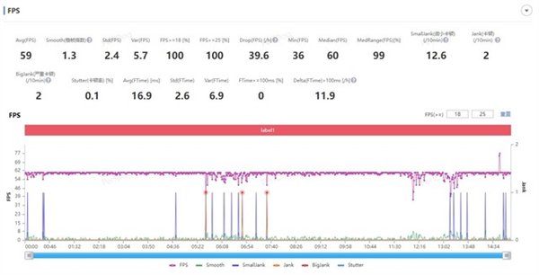 游戏方面,我们进行了经典的《崩坏:星穹铁道》黄金的时刻跑图实测,测试时间为15分钟,画面设置为非常高+60帧,实测平均帧率均为59帧。