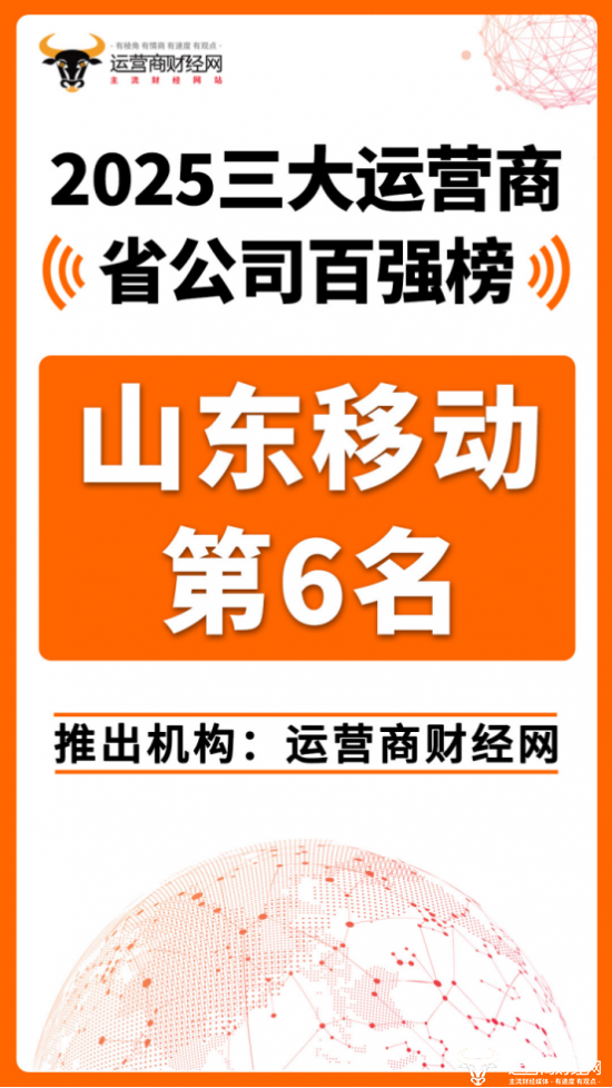日前,运营商财经网重磅推出“2025三大运营商省公司百强榜”!山东移动位列总榜第六,其年营收在中国移动内仅次于浙江移动。