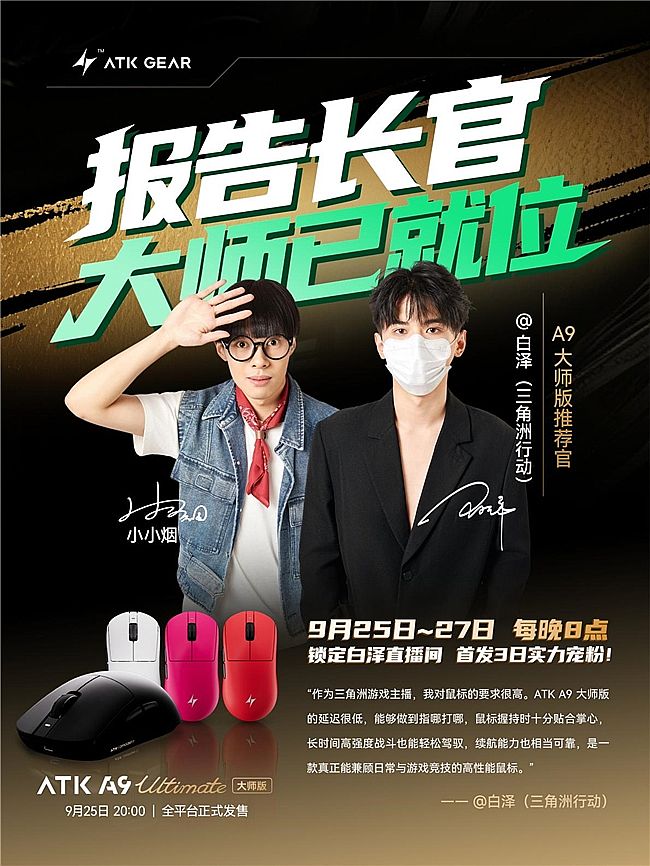 《三角洲行动》顶流主播白泽,力荐ATK全新旗舰鼠标——ATK A9大师版。