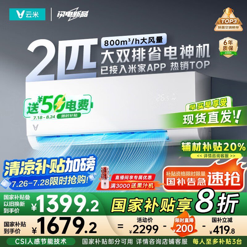 云米2匹空调Smart3 max低至2039元