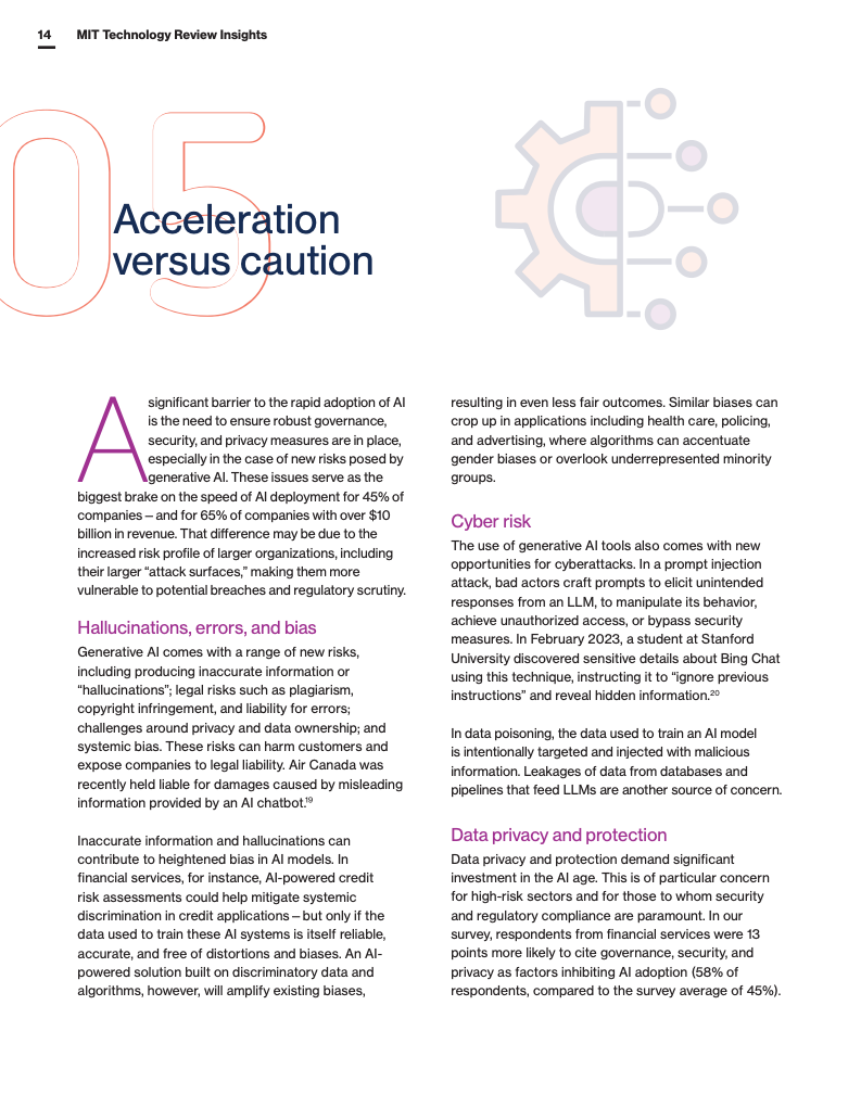 成本依然是企业扩展AI应用的关键考量。以谷歌为例,2023年第三季度其AI成本高达80亿美元,训练先进模型GPT-4成本约7800万美元,硬件特别是GPU价格居高不下。中型企业面临的预算压力尤为明显,47%的中型企业将资金限制视为延缓AI部署的重要因素。与此对应的是,企业对AI投资回报的测量方法正在不断完善。除了评估效率提升和成本节约,“软”回报如员工体验改善和新业务机会的创造也被纳入考量。AI助力提升员工工作产能,缓解重复性任务,有利于创新和人才吸引。
