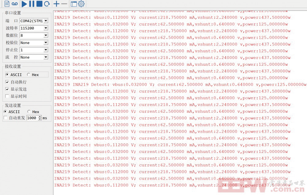 11. printf(“INA219 Detect: vbus:%f V; current:%f mA,vshunt:%f v,power:%fwrn”, busVoltage,current,shuntVoltage,power);