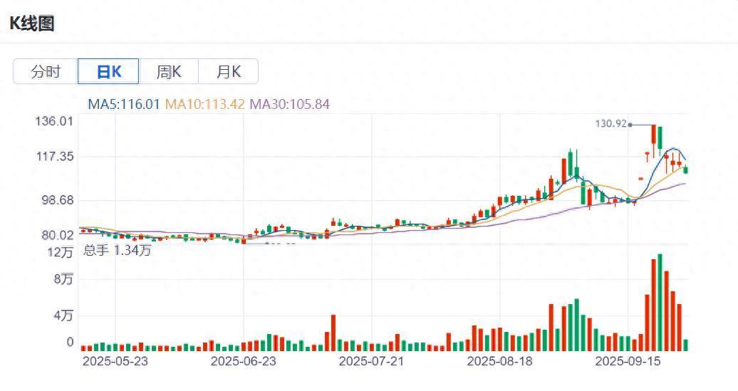 进入三季度,公司股价涨势喜人。9月19日,在斩获三连板之后以130.92元/股收盘,创下股价历史第二高值,距离4月初66元/股的年底低点,涨幅接近100%。