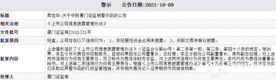 值得关注的是,苏卫标在担任财务总监期间曾数次被监管处理。2021年10月9日,厦门证监局查明奥佳华存在非经营性资金占用未披露及关联交易未按规定审议和披露的问题。作为财务总监,苏卫标对上述违规行为负有主要责任,被采取出具警示函的行政监管措施,相关情况被记入证券期货市场诚信档案。2022年1月26日,深圳证券交易所亦对其给予通报批评处分。