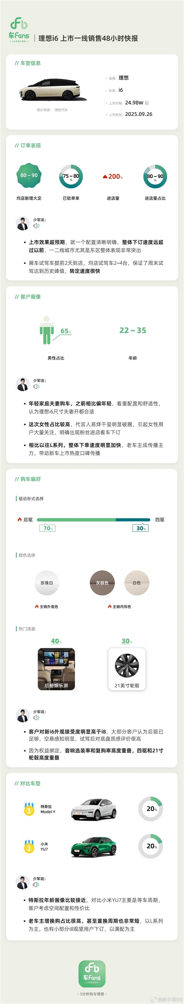 特斯拉年龄画像比较接近,对比小米YU7主要是等车周期,客户考虑空间配置和性价比。