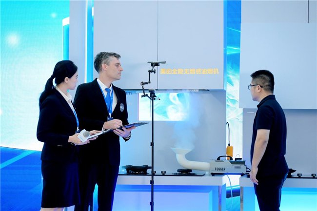 “我们产品虽然隐藏在橱柜中,但是可以实现烹饪过程0手动。”郑志伟表示,“因为我们通过创新温感联动技术,能实现万灶联动,也就是说我们的烟机可以和任何品牌的灶具联动开关机。同时,我们还开创性地研发了烟感智控技术,炒菜过程中油烟机根据烟雾浓度和烟道负压大小自动调节风力大小,真正实现操作‘0手动’。”