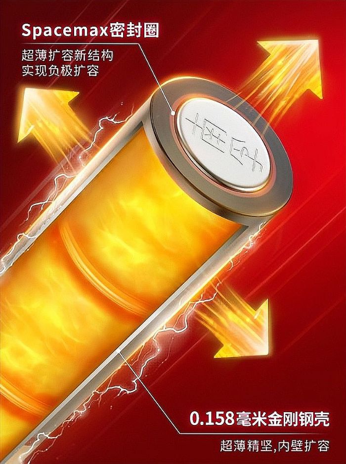 近期上线的聚能环5代电池再次突破自我。南孚首创超薄密封圈结构,推出Spacemax密封圈。传统密封圈为保障密封性会占据较多空间,限制电量提升,而Spacemax密封圈通过重构密封结构,将空间让渡给电芯,实现有效储电空间扩容。同时,超薄扩容结构提升了密封性能,减少外界环境对电池内部化学反应的干扰,有效抑制自放电效应,降低电量损耗率,进一步提升电池耐用性。