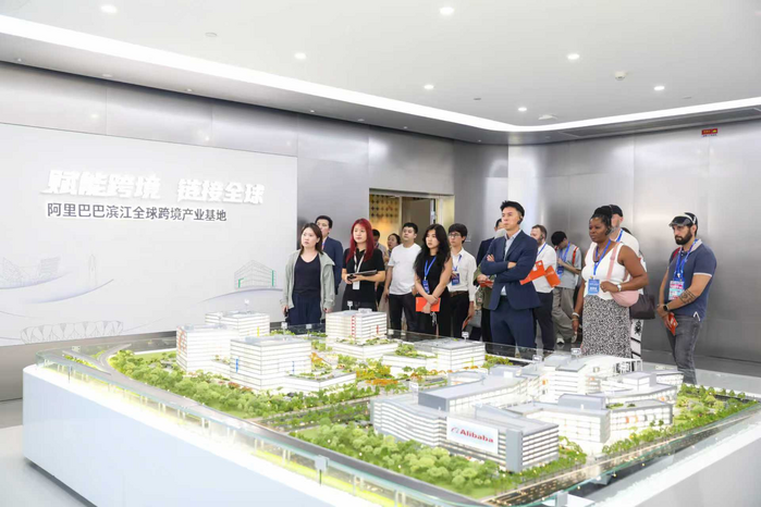 阿里中心·杭州滨江是浙江省首个融合跨境电商与直播电商的数字经济标杆园区。1688选品中心来自全国优质产业带的产品让参访嘉宾眼花缭乱,在阿里巴巴全球跨境产业基地,参访嘉宾对其跨境平台、物流、支付、财税等全链条服务也展现了极大兴趣。