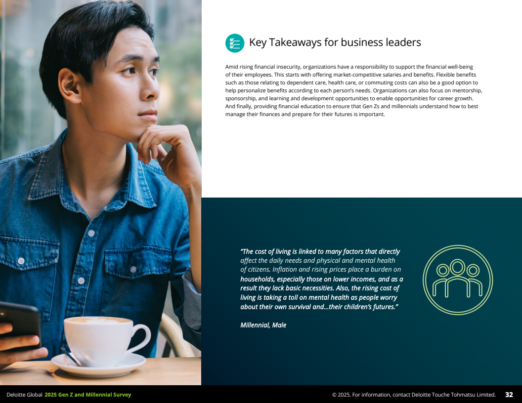 综上所述,Z世代和千禧一代职场心态体现出对个人成长、技术适应与内在价值的高度重视,但同时对经济环境和职场管理提出新的诉求。未来,企业应打造持续学习环境,强化领导力发展,优化员工福祉支持,同时积极应对财务和环境挑战,才能吸引并留住这两代核心劳动力。