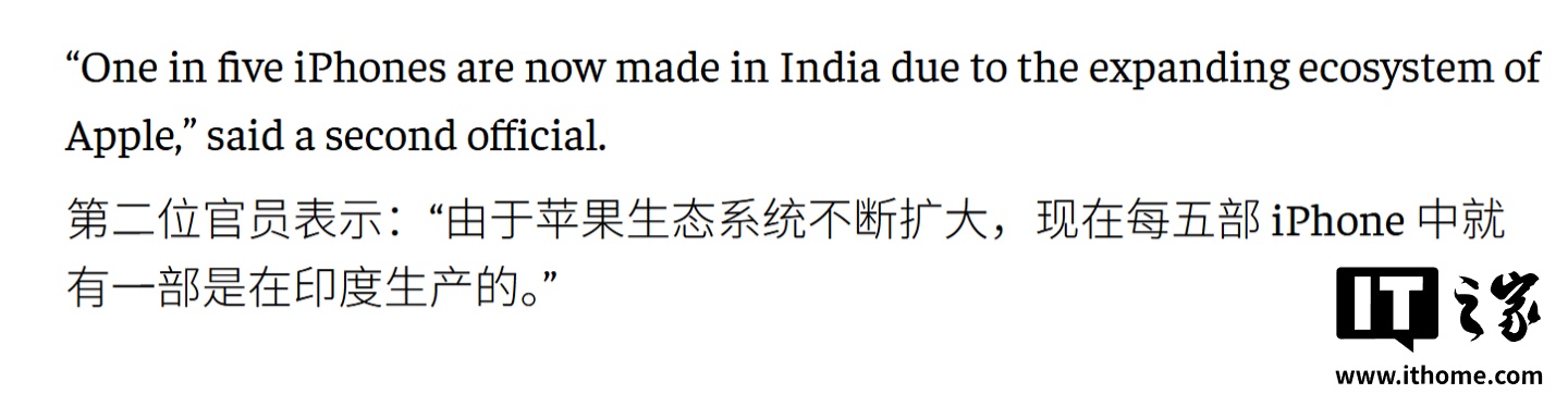 该媒体指出,苹果在印度的制造布局得以迅速扩张,主要归功于印度政府自 2020 年起实施的智能手机生产挂钩激励(PLI)计划,同时地缘政治因素也起到了关键的推动作用。