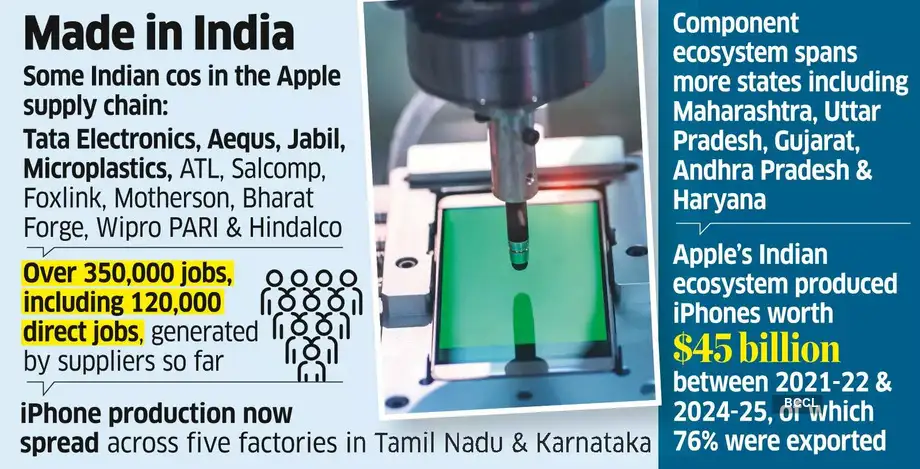 该供应链网络不仅包括塔塔电子、Wipro PARI 等大型本土企业,还吸纳了超过 20 家印度中小微企业。这些供应商共同构建了一个涵盖零部件制造和配套组件的完整生态系统,迄今已创造约 35 万个就业岗位,其中包含 12 万个直接工作岗位。