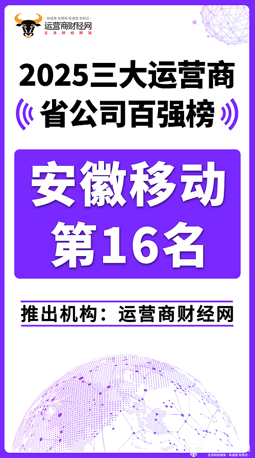 近日,运营商财经网已正式推出“2025三大运营商省公司百强榜”,安徽移动在其中排第16名,这属于非常靠前的排名,差点跻身“大省公司”行列。
