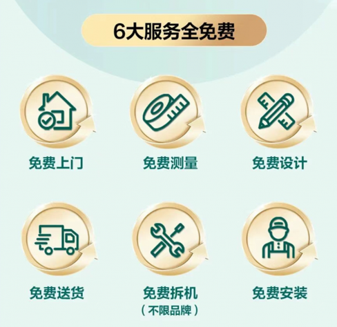 华帝精准把握了这一行业变局,率先推动竞争维度升级。其推出的"服务到家"活动,以六大免费服务体系为核心,直击行业痛点。特别是“不限品牌免费拆机”和“免费上门设计”两项服务,突破了行业传统服务边界,不仅降低了消费者的决策门槛,更重要的是解决了厨电换新过程中的实际问题。