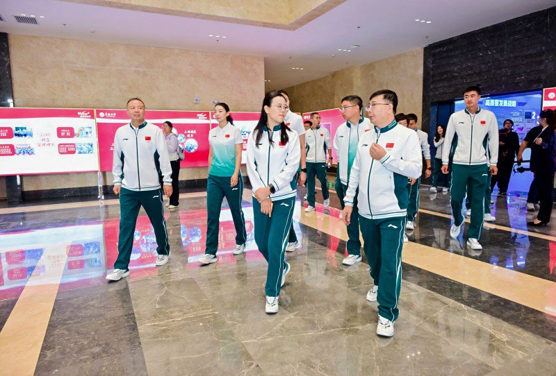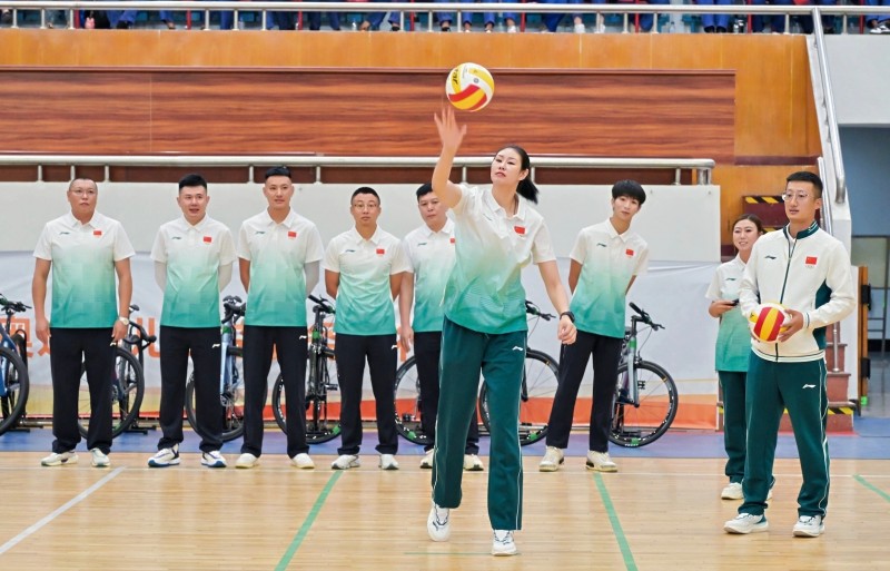 羽毛球九宫格挑战、排球发球定点挑战、蜗牛慢骑三项互动游戏将气氛推向高潮。企业员工代表与运动员组队参与,在欢笑中体验运动乐趣。王懿律参与羽毛球挑战并为员工传授技巧,颜妮为排球爱好者纠正发球姿势,刘浩、李奇时则亲自指导员工进行“蜗牛慢骑”游戏,让员工们近距离感受冠军风采。活动现场还设置了体育器材体验区,进一步激发员工参与体育锻炼的积极性。