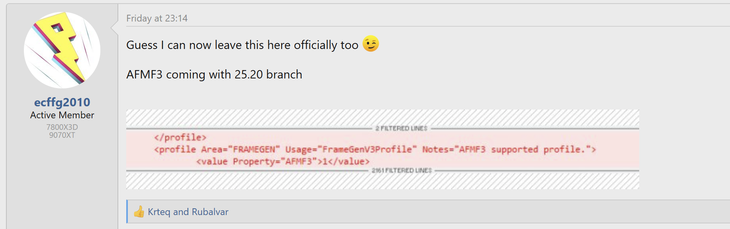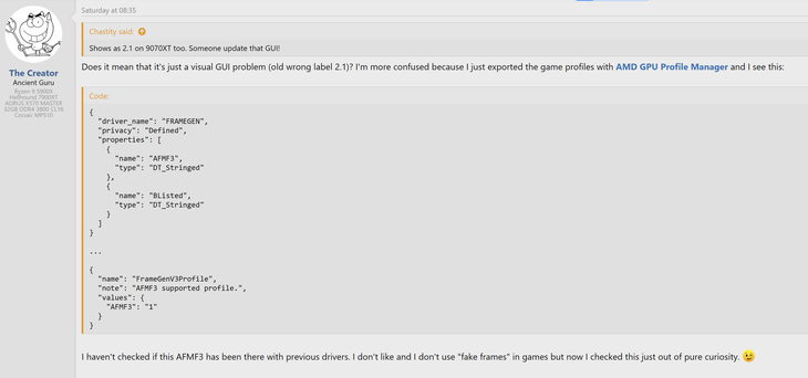根据用户“The Creator”和“ecffg2010”的发现,在最新的AMD Radeon软件测试版本中,尽管官方发布说明和软件图形界面中均未提及AFMF 3,但通过AMD GPU配置文件管理器导出游戏配置文件后,清晰地显示了新版本的存在。社区推测,AFMF 3很可能将随AMD的25.20驱动分支正式亮相,而该分支预计将配合备受期待的FSR Redstone更新一同发布。