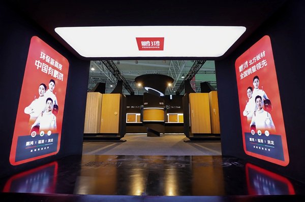 走进鹏鸿以“传奇灵韵,绽放华彩”为主题的展馆,你会发现这里不像传统展位,更像一个高端家居体验空间。没有枯燥的参数罗列,取而代之的是直观的场景化感受:你可以亲手触摸“传奇系列”板材上精致的同步对花深压纹,感受其媲美实木的质感;可以在“茶多酚释香板”专区,闻到那股自然而舒缓的淡淡茶香。这种让产品价值“自己说话”的展陈方式,显然深深打动了专业观众和评委。