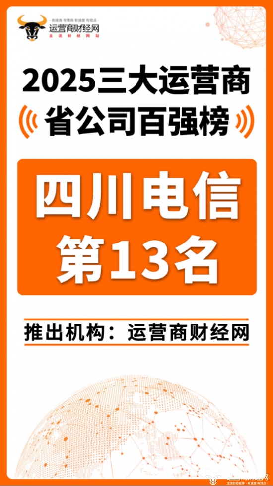 日前,运营商财经网重磅推出“2025三大运营商省公司百强榜”!四川电信位列总榜第十三,排在浙江电信之后,是中国电信旗下的一大省级分公司。