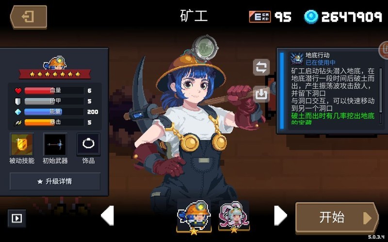 矿工可钻入地下移动,期间无敌且能穿墙,进出地面各造成一次震荡伤害,必带眩晕效果,不蓄力23点,蓄力后提升至30点。