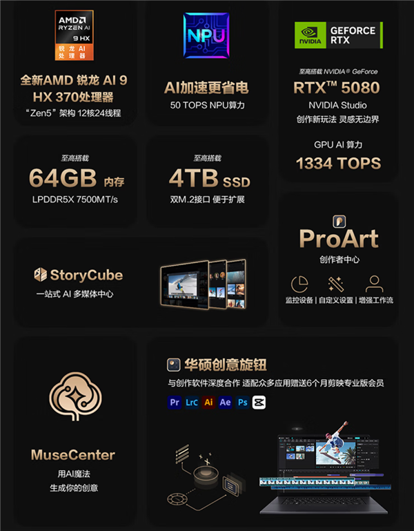 内存容量则还是64GB LPDDR5X-7500,处理器仍是AMD Zen5家族的锐龙AI 9 HX 370.