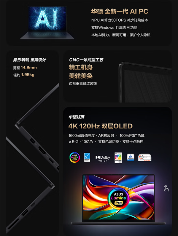 同时,SSD容量翻番增加到4TB,12Hz OLED屏幕分辨率从2.8K升级到4K,散热也加入了VC均热板,但是整机性能释放没有披露。