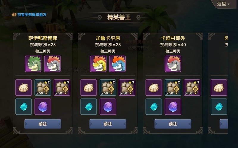驯兽师可依据阵容与战力,自主选择适合挑战的兽王进行对战。
