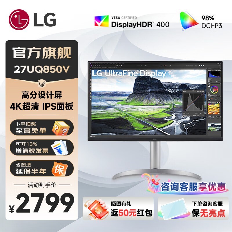 LG 27UQ850V 27 英寸 4K 显示器低至 2699 元