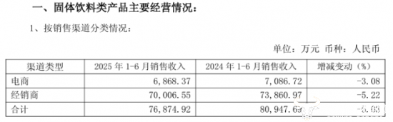 从产品来看,公司三大产品类型中,只有精制茶类实现了同比增长,其他两大系列产品均有所下滑。其中固体饮料类实现收入7.69亿元,虽仍为营收主力,但同比下滑5.03%,动植物蛋白饮料类收入为1.66亿元,同比微降了3.41%。