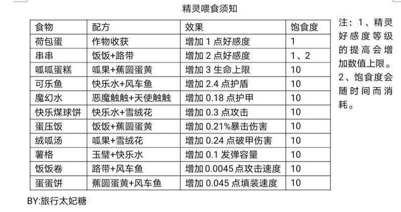 图源旅行太妃糖,内含全部食物配方、效果与饱食度数据。